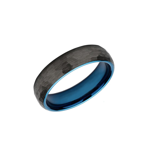 Tungsten Carbide 6mm Width Hammered Effect Ring With Black & Blue IP Plating