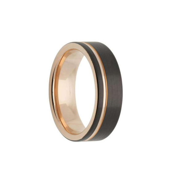 9ct Rose Gold & Carbon Inlay Lined Band Ring