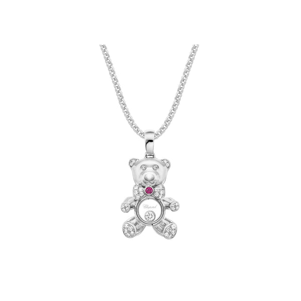 Happy Diamonds 18ct White Gold Diamond & Ruby Bear Pendant
