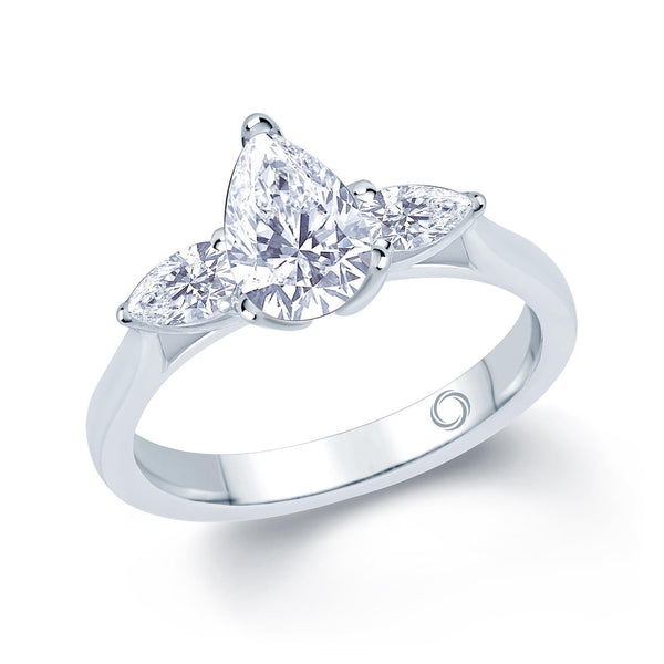 Platinum Pear Cut Diamond Three Stone Ring, 0.71ct