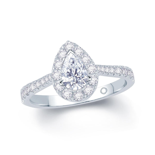 Platinum Pear Cut Diamond Halo Ring, 0.90ct