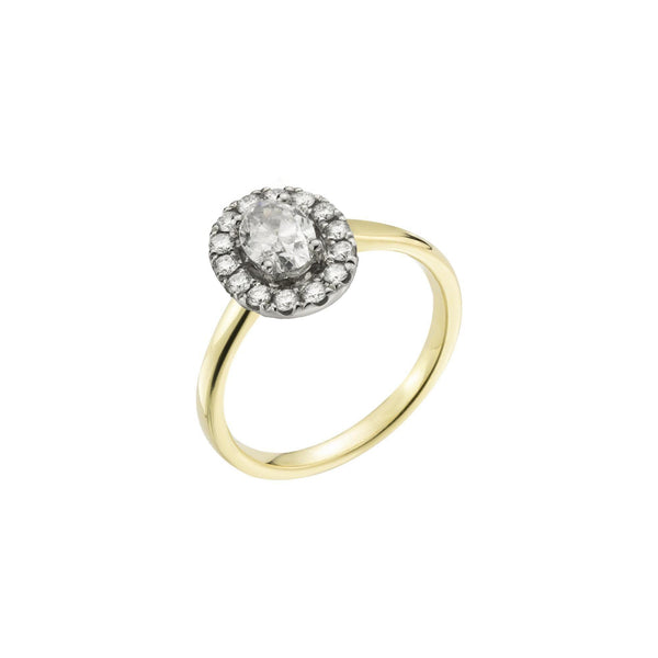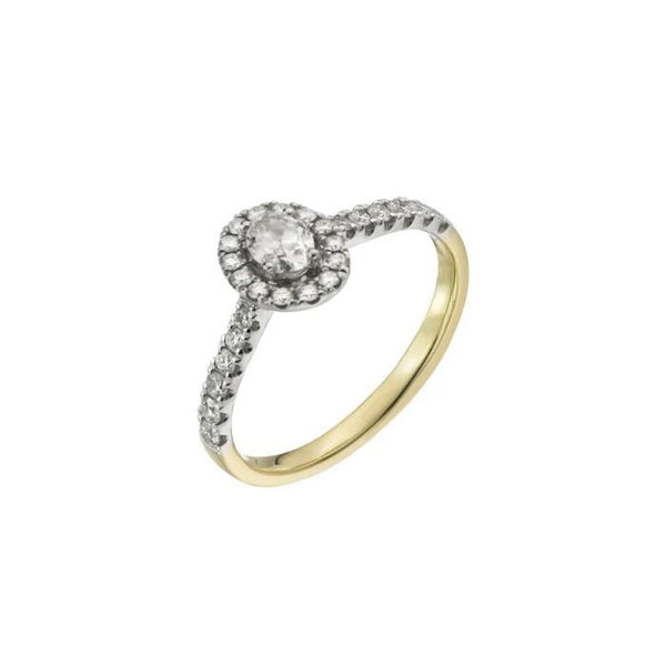 18ct Yellow Gold Oval Cut Diamond Halo Ring, 0.70ct