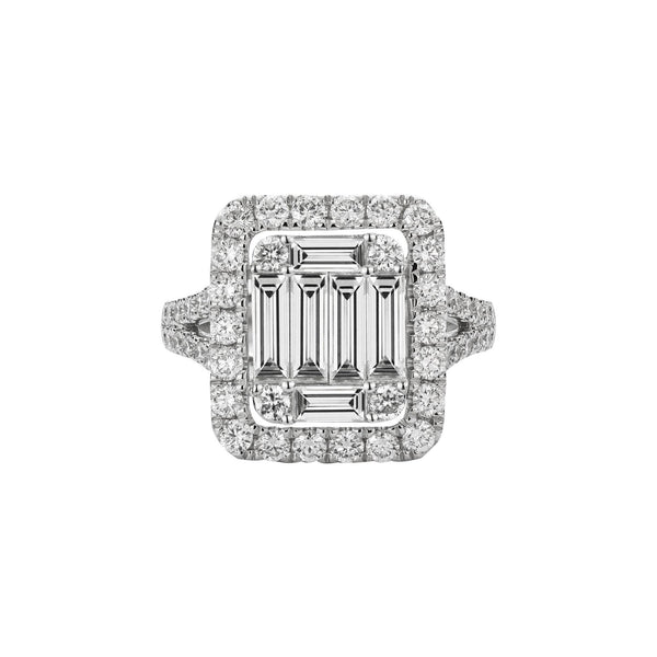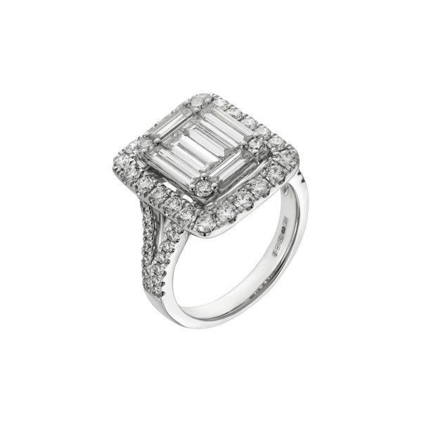 18ct White Gold Mixed Cut Diamond Halo Ring, 2.42ct