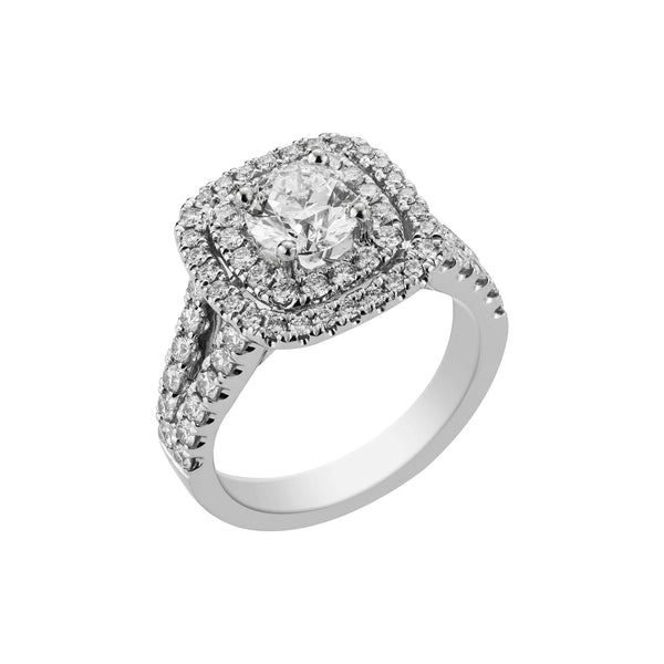 Platinum Cushion Cut Diamond Halo Ring, 2.01ct