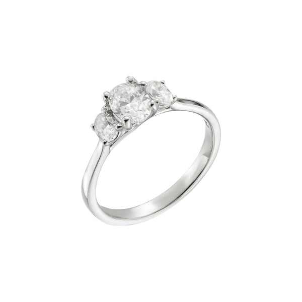 Platinum Oval Cut Diamond Three Stone Ring, 1.10ct