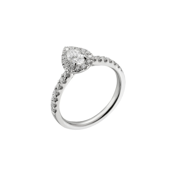Platinum Pear Cut Diamond Halo Ring, 0.74ct