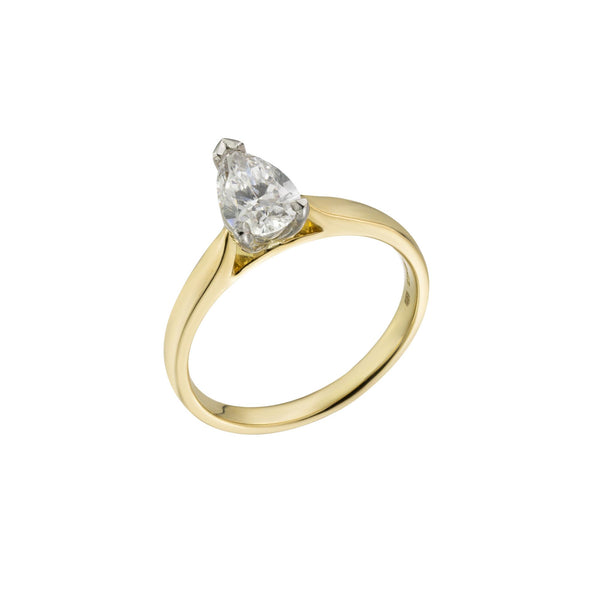 18ct Yellow Gold Pear Cut Diamond Solitaire Ring, 1.00ct
