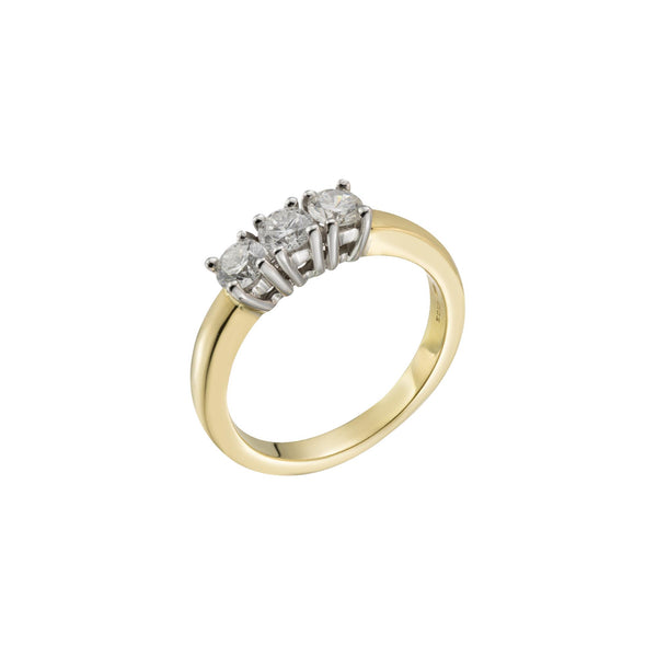 18ct Yellow Gold Round Cut Diamond Three Stone Ring, 0.65ct