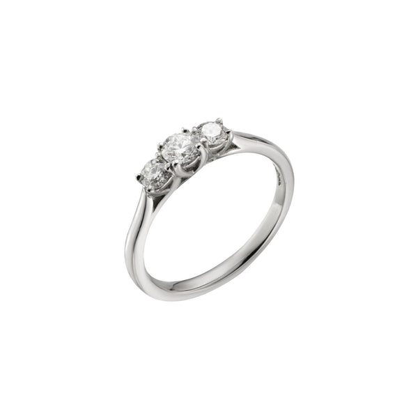 Platinum Round Cut Diamond Three Stone Ring, 0.52ct