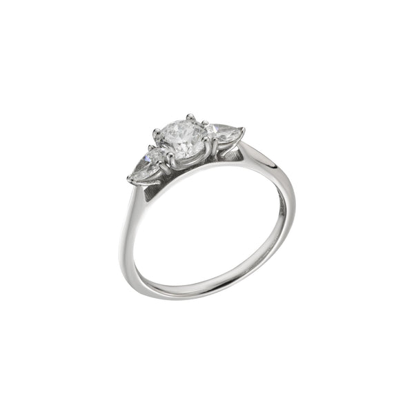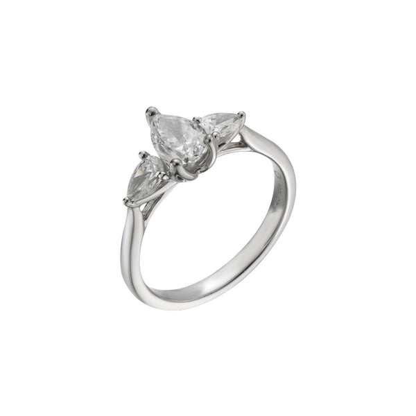 Platinum Pear Cut Diamond Three Stone Ring, 1.10ct