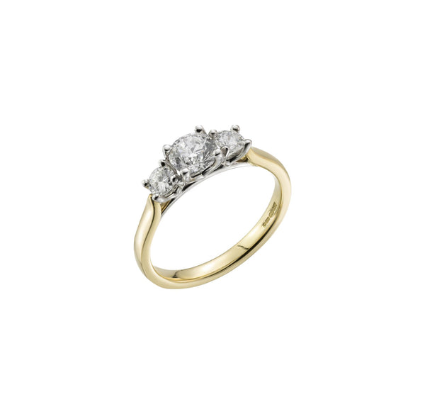 18ct Yellow Gold Round Cut Diamond Three Stone Ring, 0.80ct
