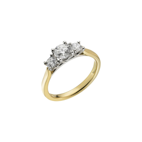 18ct Yellow Gold Round Brilliant Cut Diamond Three Stone Ring