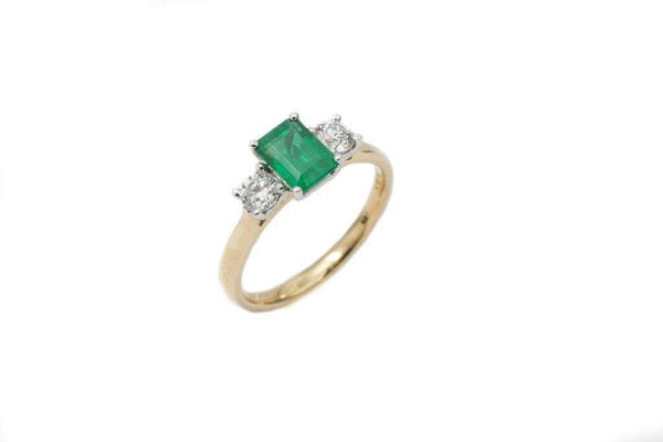 18ct Yellow Gold & Platinum Brazilian Emerald & Diamond Three Stone Ring