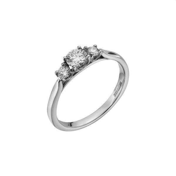 Platinum Round Cut Diamond Three Stone Ring, 0.50ct