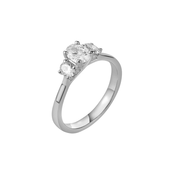Platinum Oval Cut Diamond Three Stone Ring, 0.80ct