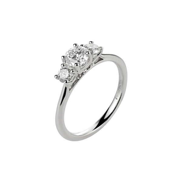 Platinum Round Brilliant Cut Diamond Three Stone Ring, 0.84ct