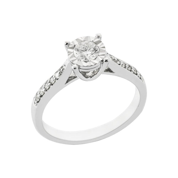 9ct White Gold Round Cut Diamond Solitaire Ring ,0.19ct