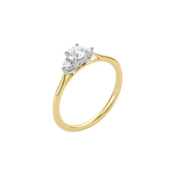 18ct Yellow Gold Round Cut Diamond Three Stone Ring, 0.46ct