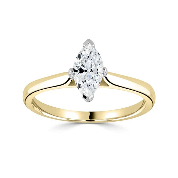 18ct Yellow Gold Marquise Cut Diamond Solitaire Ring, 0.55ct