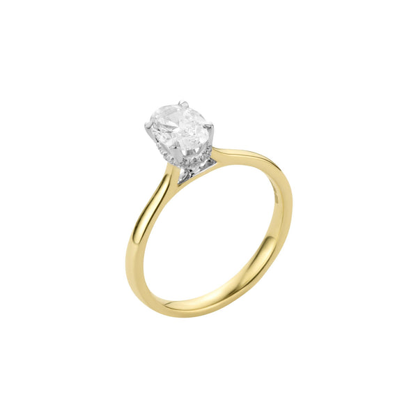 18ct Yellow & White Gold Oval Cut Diamond Ring, 0.85ct