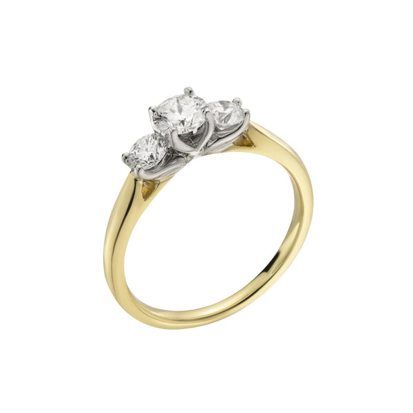 18ct Yellow Gold Round Cut Diamond Three Stone Ring, 0.77ct