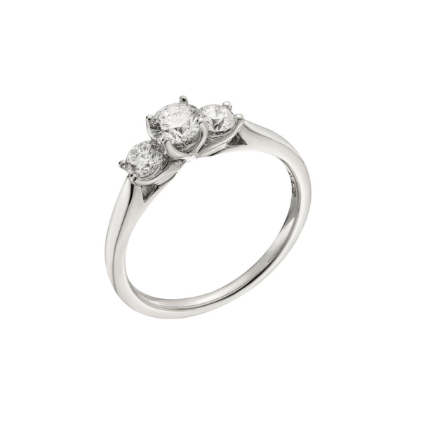 18ct White Gold Round Cut Diamond Three Stone Ring, 0.78ct