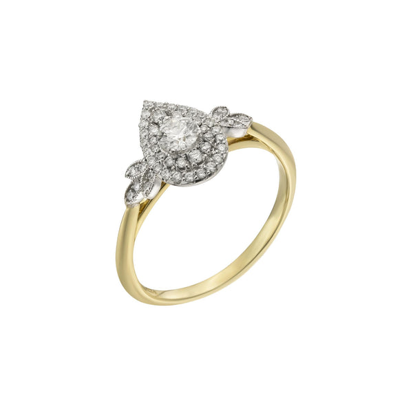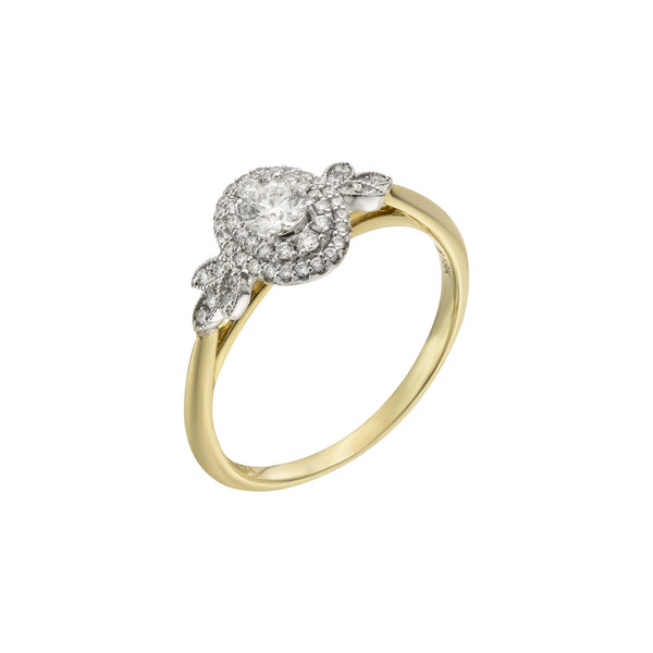 18ct Yellow Gold Round Cut Diamond Double Halo Ring, 0.47ct
