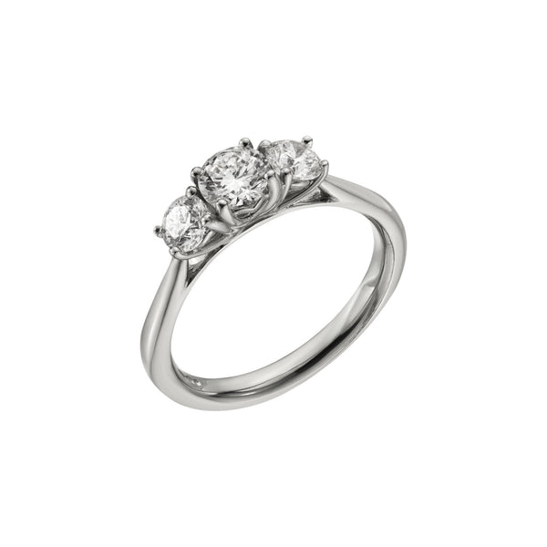 Platinum Round Cut Diamond Three Stone Ring, 1.00ct