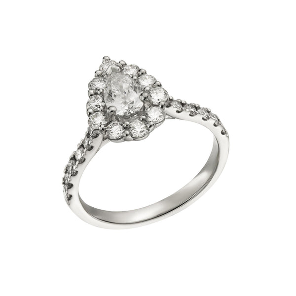 Platinum Pear Cut Diamond Halo Ring, 1.30ct