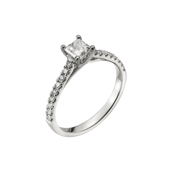 Platinum Princess Cut Diamond Solitaire Ring, 0.90ct