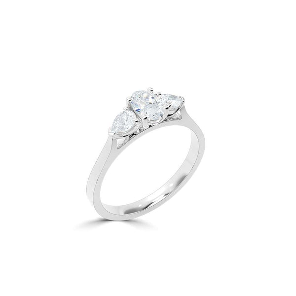 Three-Stone Rings: Symbolising your past, present, and future together. This meaningful design features a central diamond flanked by two beautiful side stones.