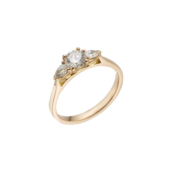 Three-Stone Rings: Symbolising your past, present, and future together. This meaningful design features a central diamond flanked by two beautiful side stones.