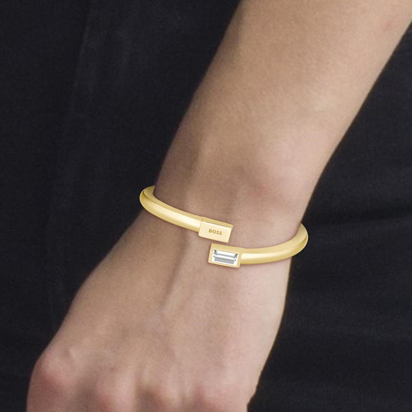 Clia Yellow Gold Plated Stainless Steel Crystal Bangle
