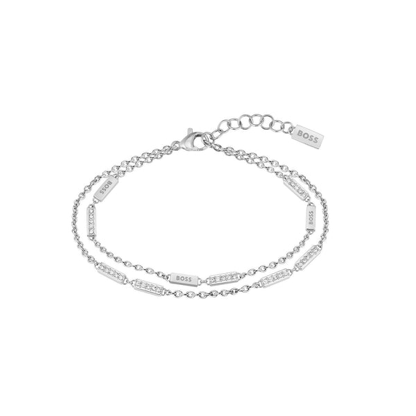 Laria Stainless Steel Double Row Crystal Block Bracelet