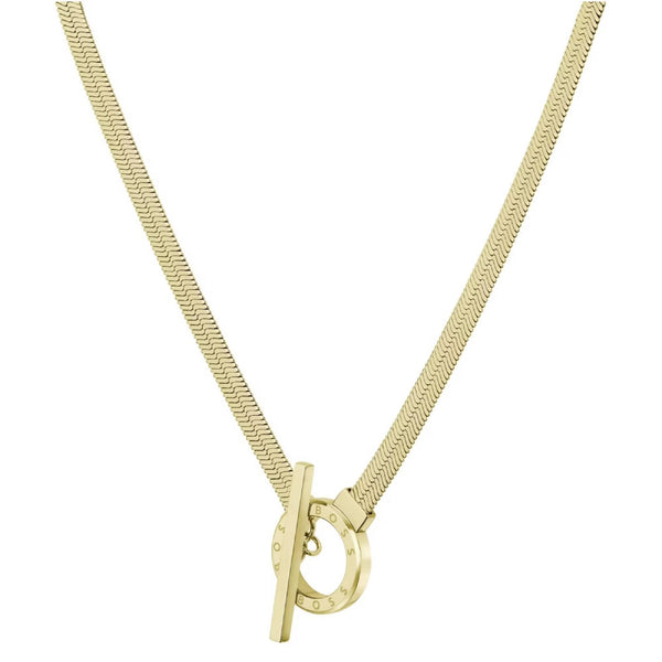 Zia Yellow Gold IP Necklace with Chain Ring & Etched Boss Closure