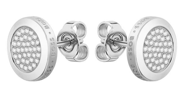 Medallion Stainless Steel and Crystal Earrings