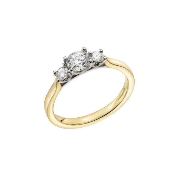18ct Yellow Gold and Platinum Round Brilliant Cut Diamond Three Stone Ring