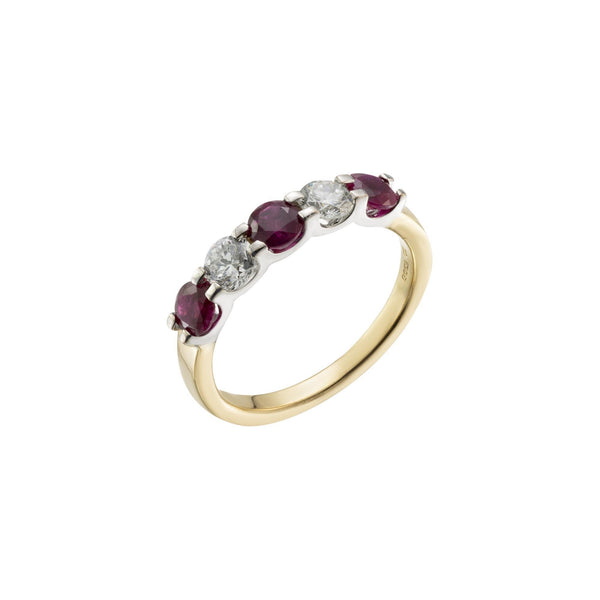 18ct Yellow Gold Ruby & Diamond Five Stone Ring