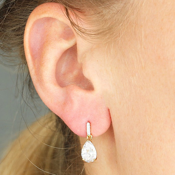 Silver Yellow Gold Plated Cubic Zirconia Pear Drop Earrings