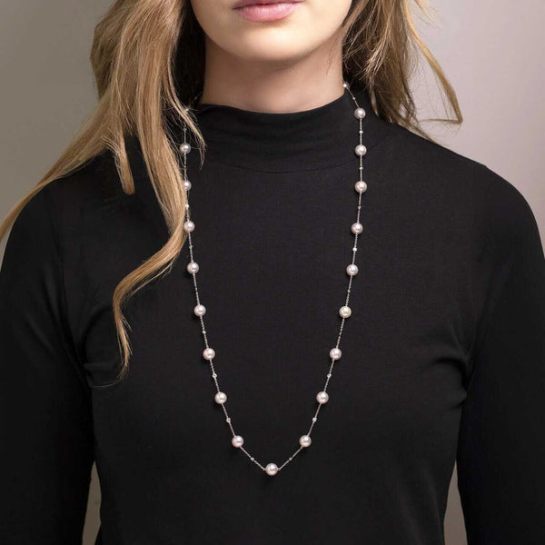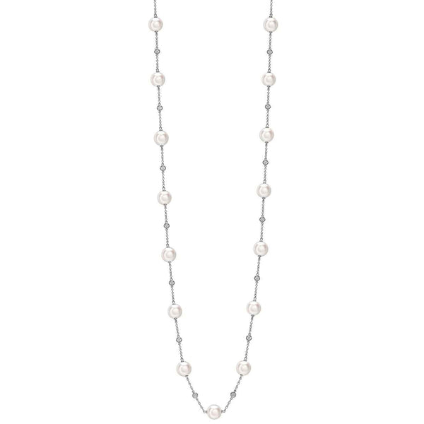 18ct White Gold Akoya Pearl & Diamond Chain Necklace
