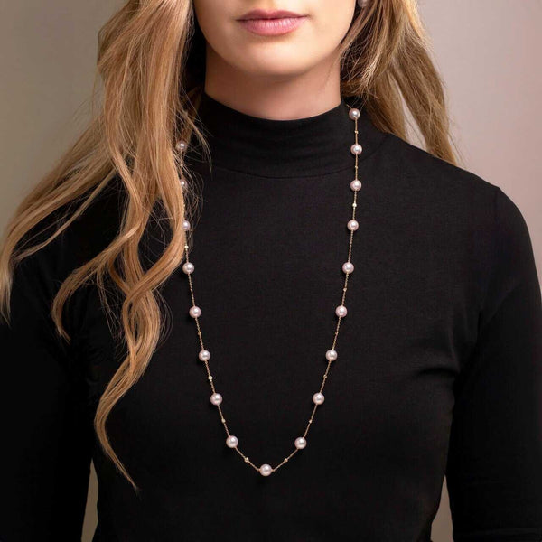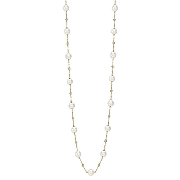18ct Yellow Gold Akoya Pearl & Diamond Chain Necklace