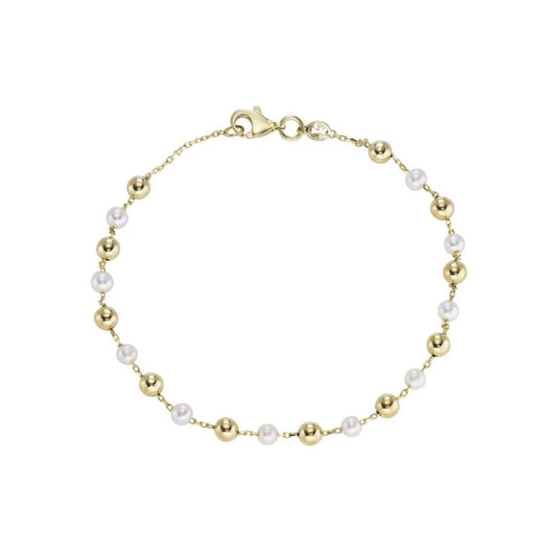 9ct Yellow Gold Ball & Cultured Pearl Bracelet