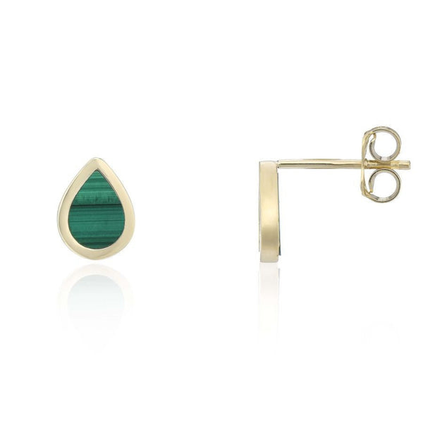 9ct Yellow Gold Malachite Pear Stud Earrings