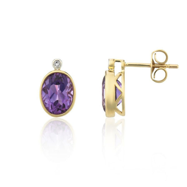 9ct Yellow Gold Amethyst and Diamond Stud Earrings