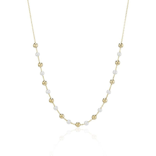 9ct Yellow Gold Ball & Cultured Pearl Necklace