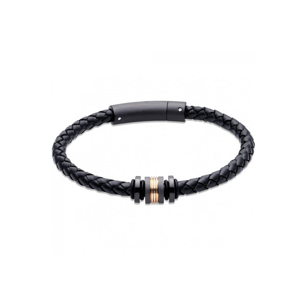 Black Leather Braided Bracelet with Black Ion Plated Clasp