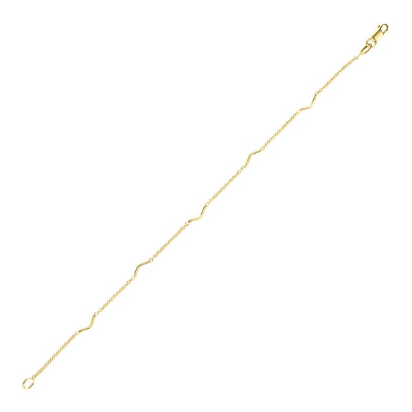 9ct Yellow Gold Trace Chain & Wavy Bars Bracelet