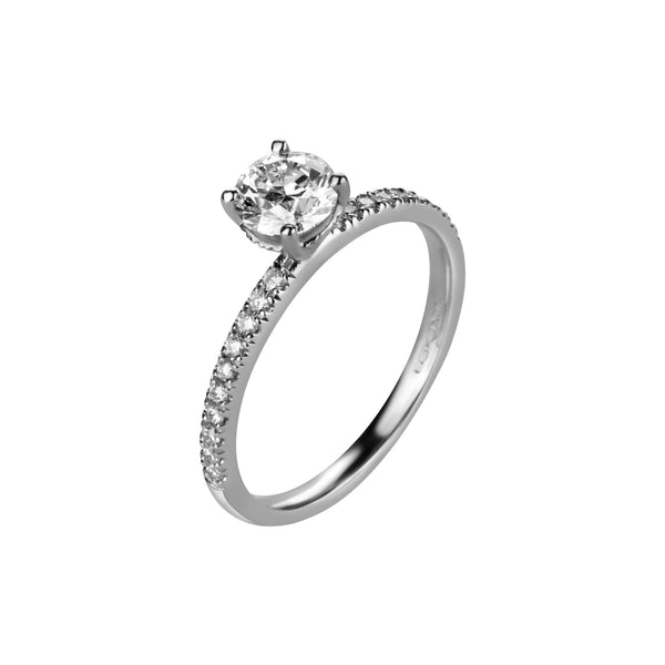 Platinum Round Brilliant Cut Diamond Solitaire Ring with Hidden Halo