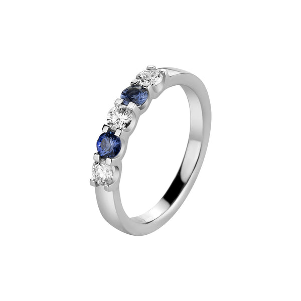 Platinum Round Cut Sapphire & Diamond Five Stone Ring