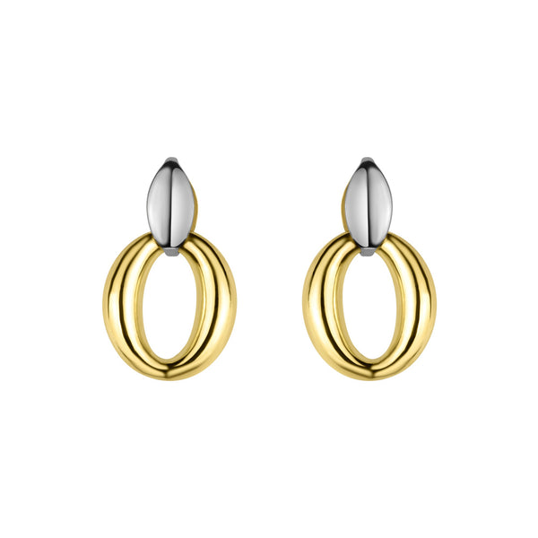 9ct Yellow White Open Oval & Bar Drop Earrings